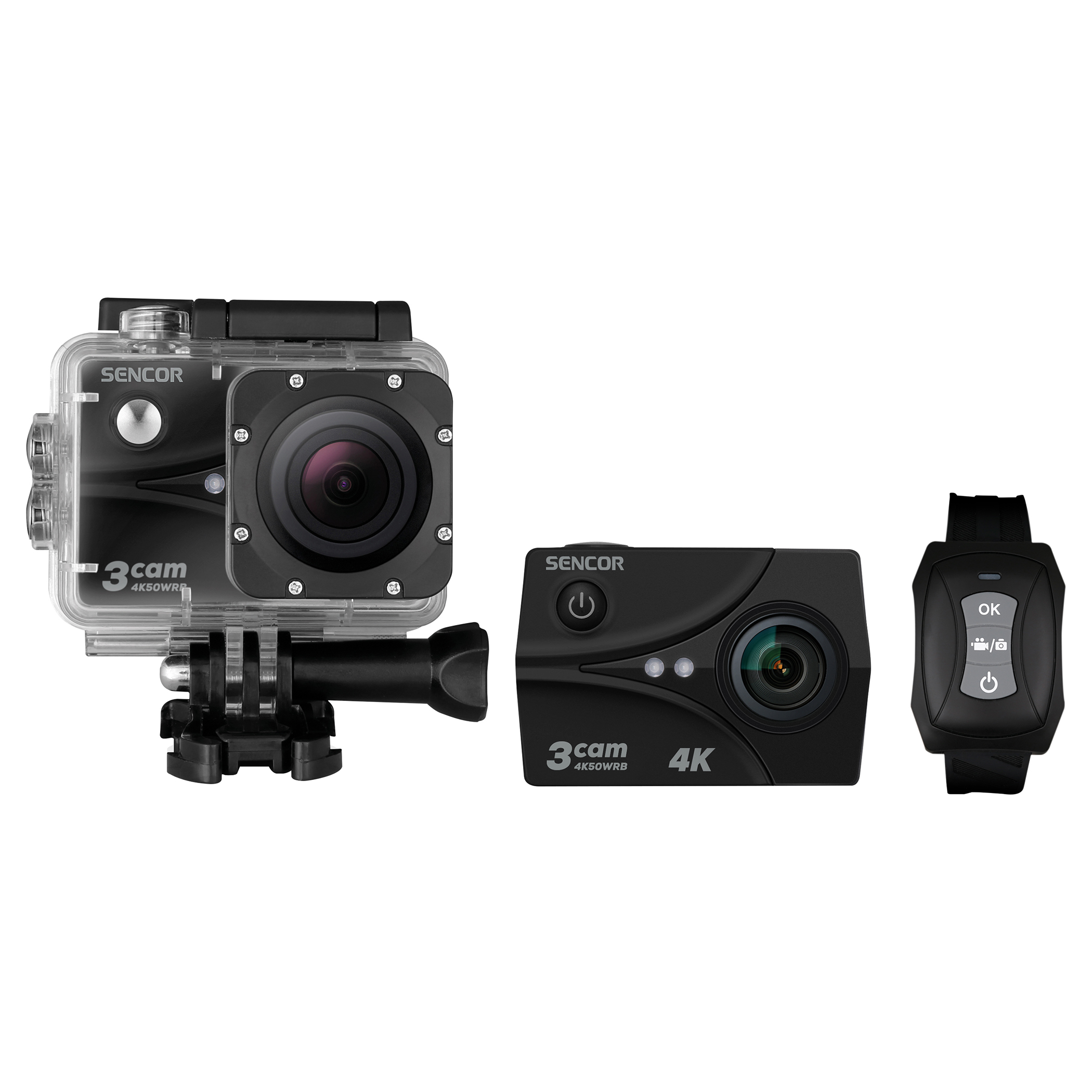 Špičková kamera 3CAM 4K50WRB dokáže natáčať videá vo vysokom rozlíšení až 4K (3840 × 2160) pri 30 snímkach za sekundu pomocou výkonného čipsetu Ambarella A12. Ostrý a vyvážený obraz docieli pomocou senzora CMOS SONY 117 a 6-vrstvovej sklenenej šošovky. Pre dokonale spomalené zábery poslúži vysokorýchlostné snímanie v rozlíšení FHD (1920 × 1080) pri 120 snímkach či rozlíšení HD (1280 × 720) pri 240 snímkach za sekundu. Vodovzdorné puzdro, s ktorým môžete natáčať pod vodou až do 60 metrov, je možné využiť pre všetky aktivity vo vode alebo pri nepriaznivom počasí. Na 2" displeji si môžete nastaviť svoj ideálny režim natáčania alebo si prezerať už vytvorené videá či fotografie. Kamera disponuje Wi-Fi modulom na jednoduché ovládanie a ukladanie videí a fotiek z kamery do vášho mobilného telefónu či tabletu a Bluetooth modulom na ovládanie kamery pomocou vodovzdorného diaľkového ovládania do 1 m pod hladinu vody počas 30 minút, ktorý je súčasťou balenia. V balení nechýba ani náhradná batéria, prichytenie na prilbu alebo za opasok a hŕba ďalšieho príslušenstva, ktoré vám umožní si kameru prichytiť, ako potrebujete v danej situácii.
