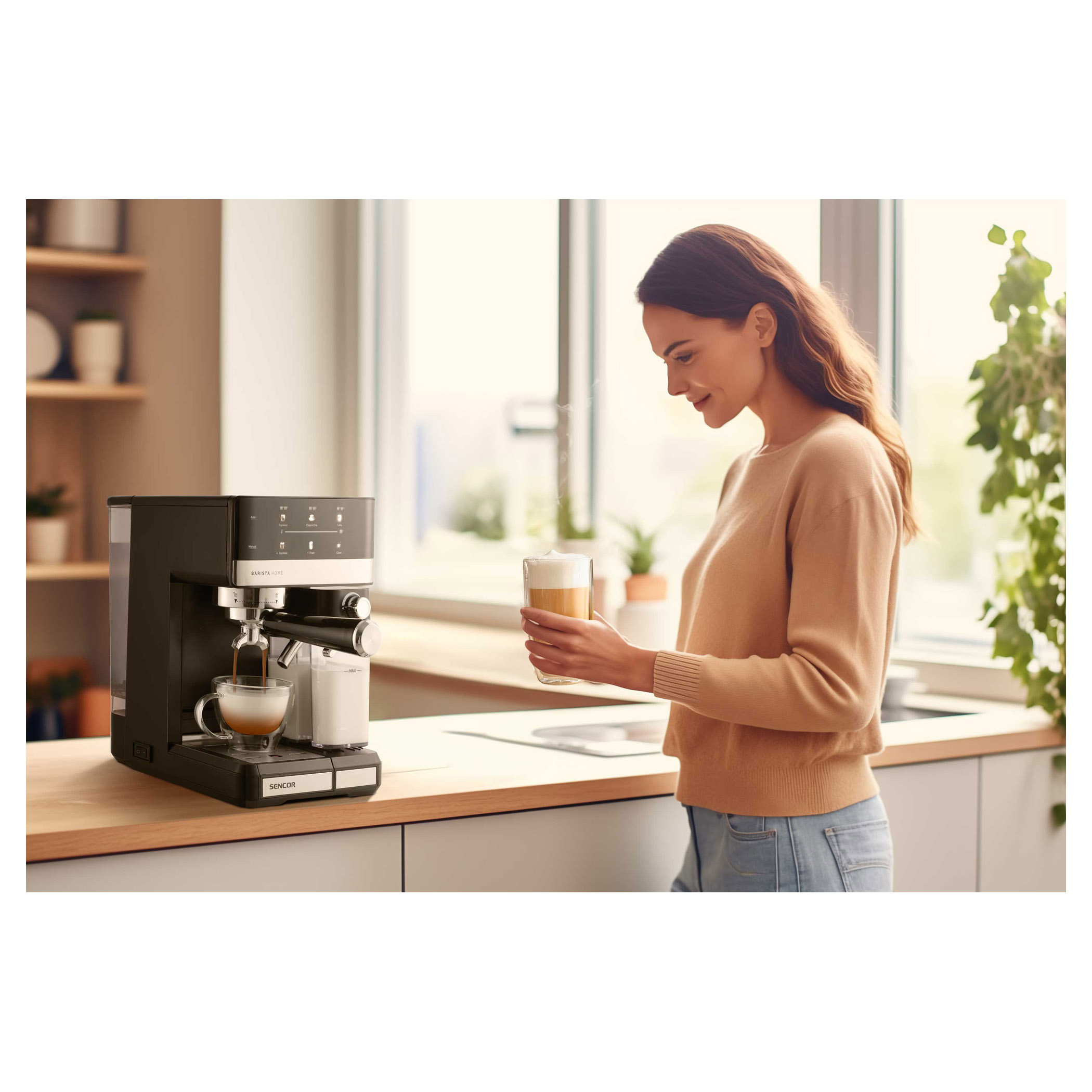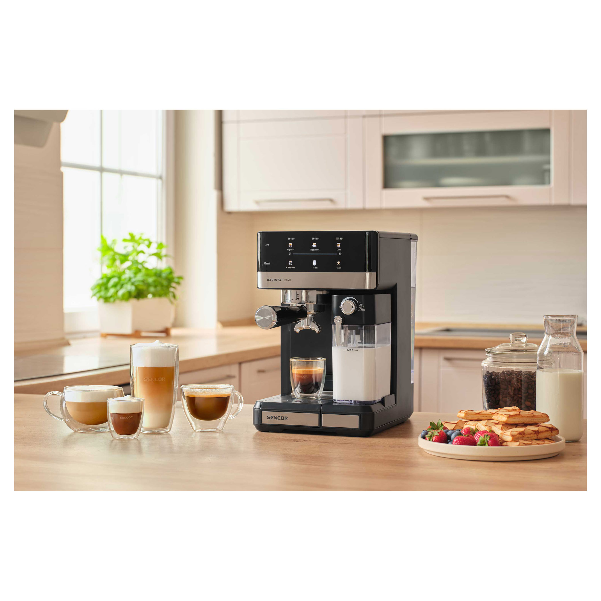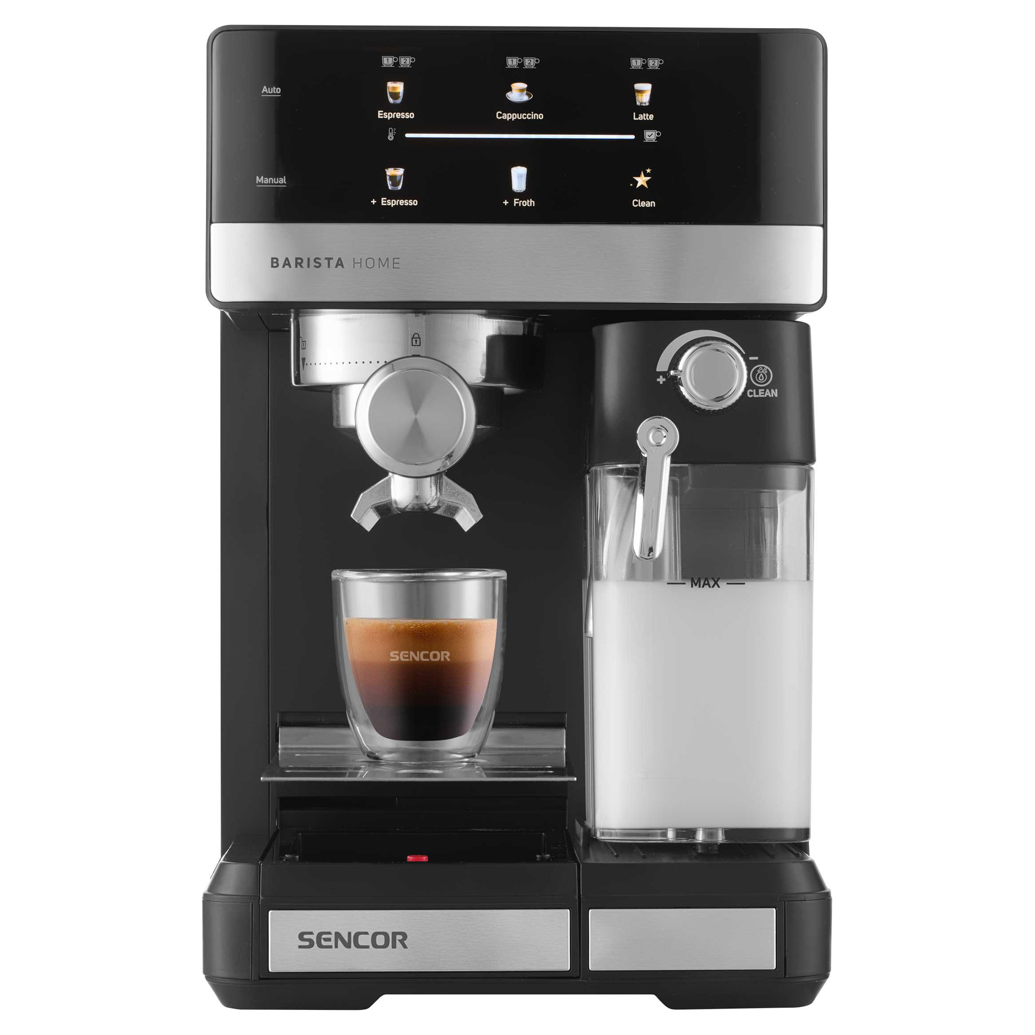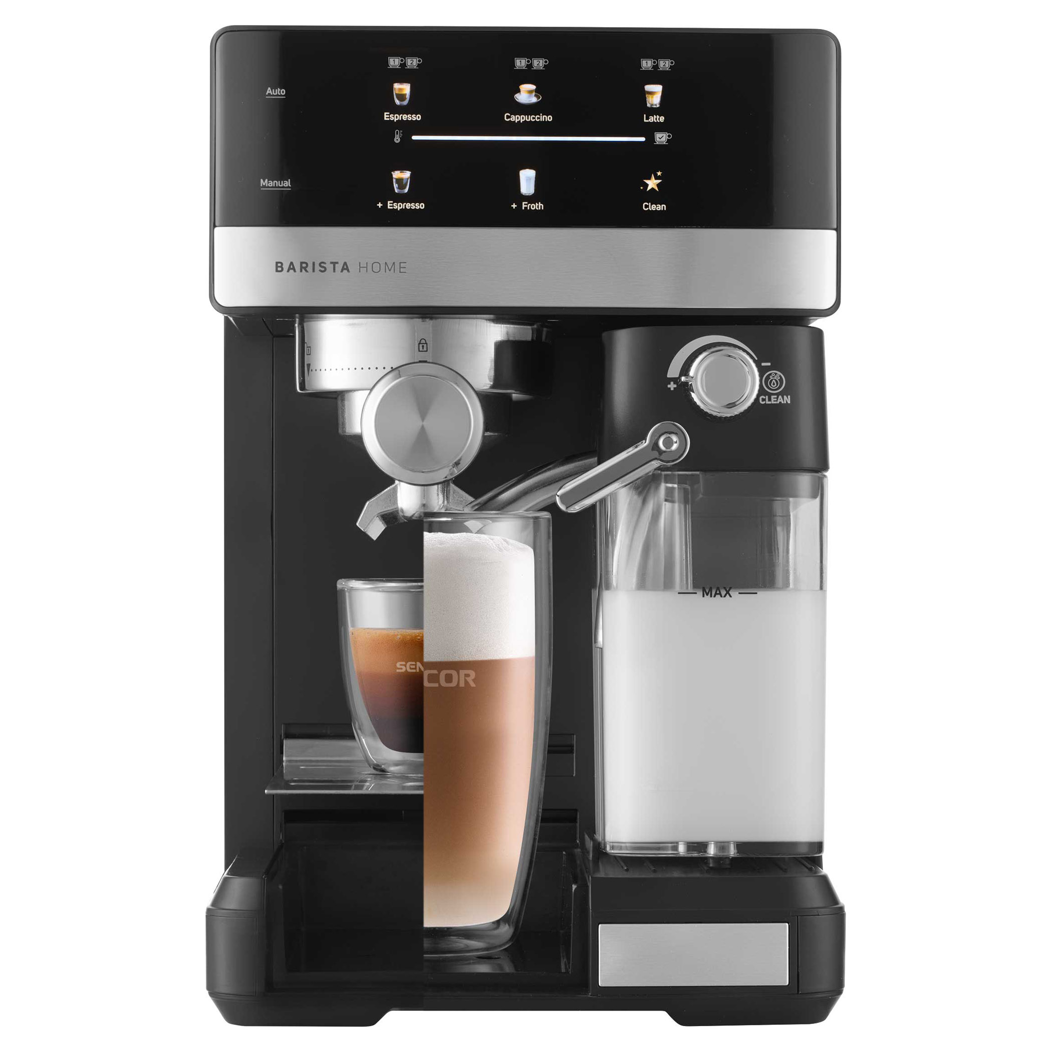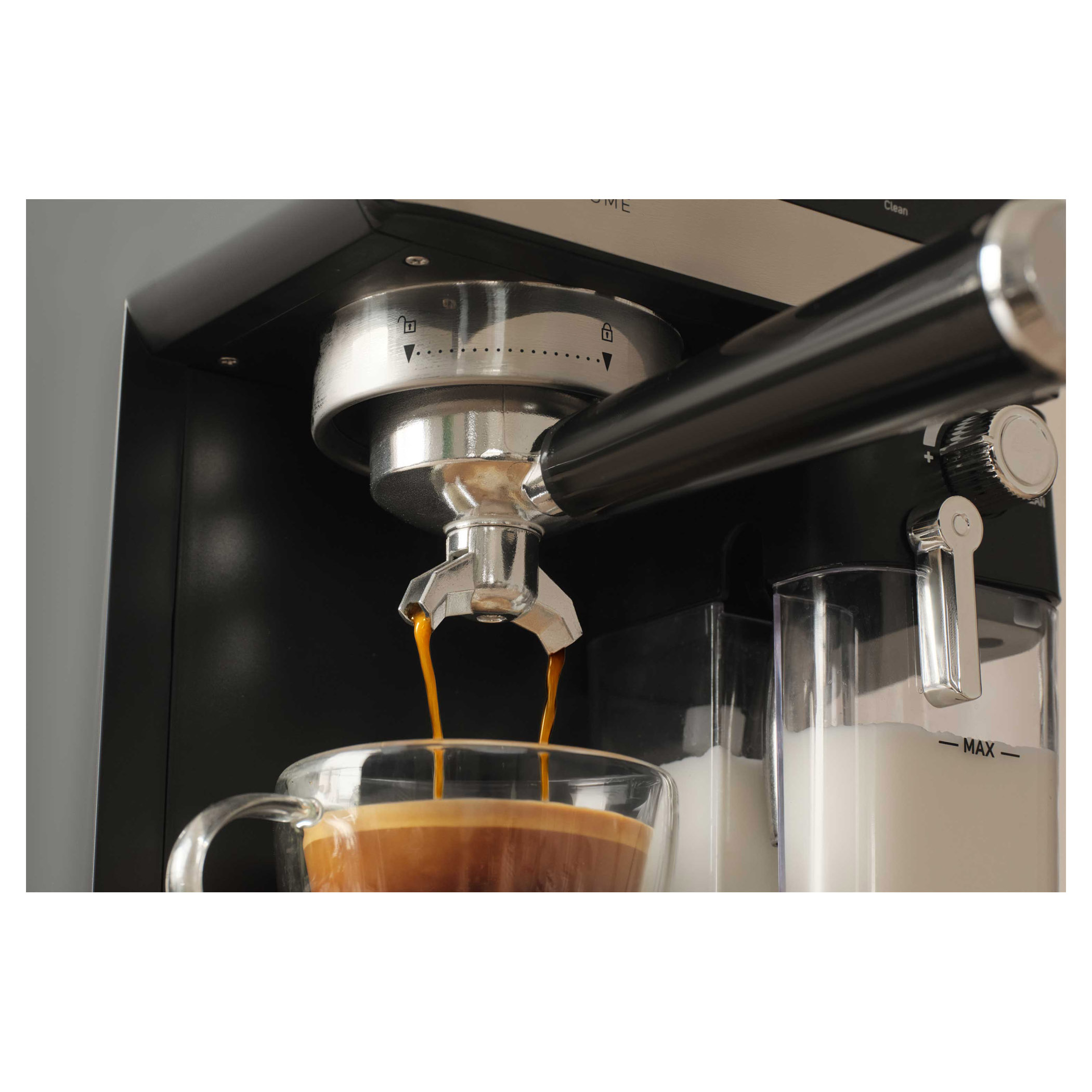 • Odnímateľná priehľadná nádržka na mlieko s objemom 500 ml s odnímateľným zariadením na napenenie mlieka