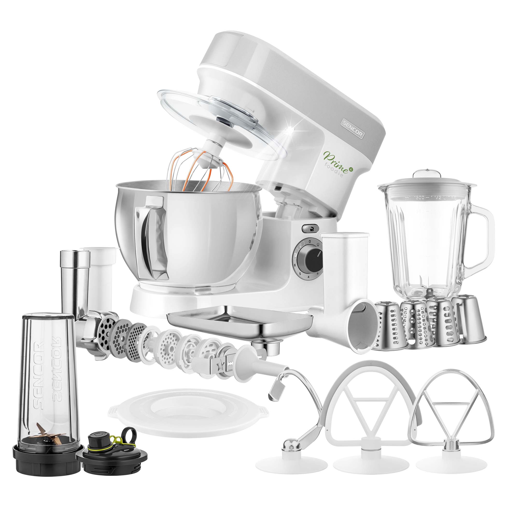 Mäsomlynček s tromi nástavcami na hrubé a jemné mletie + nástavce na výrobu cestovín.Príslušenstvo ku kuchynskému robotu Sencor STM 376x a 378x.