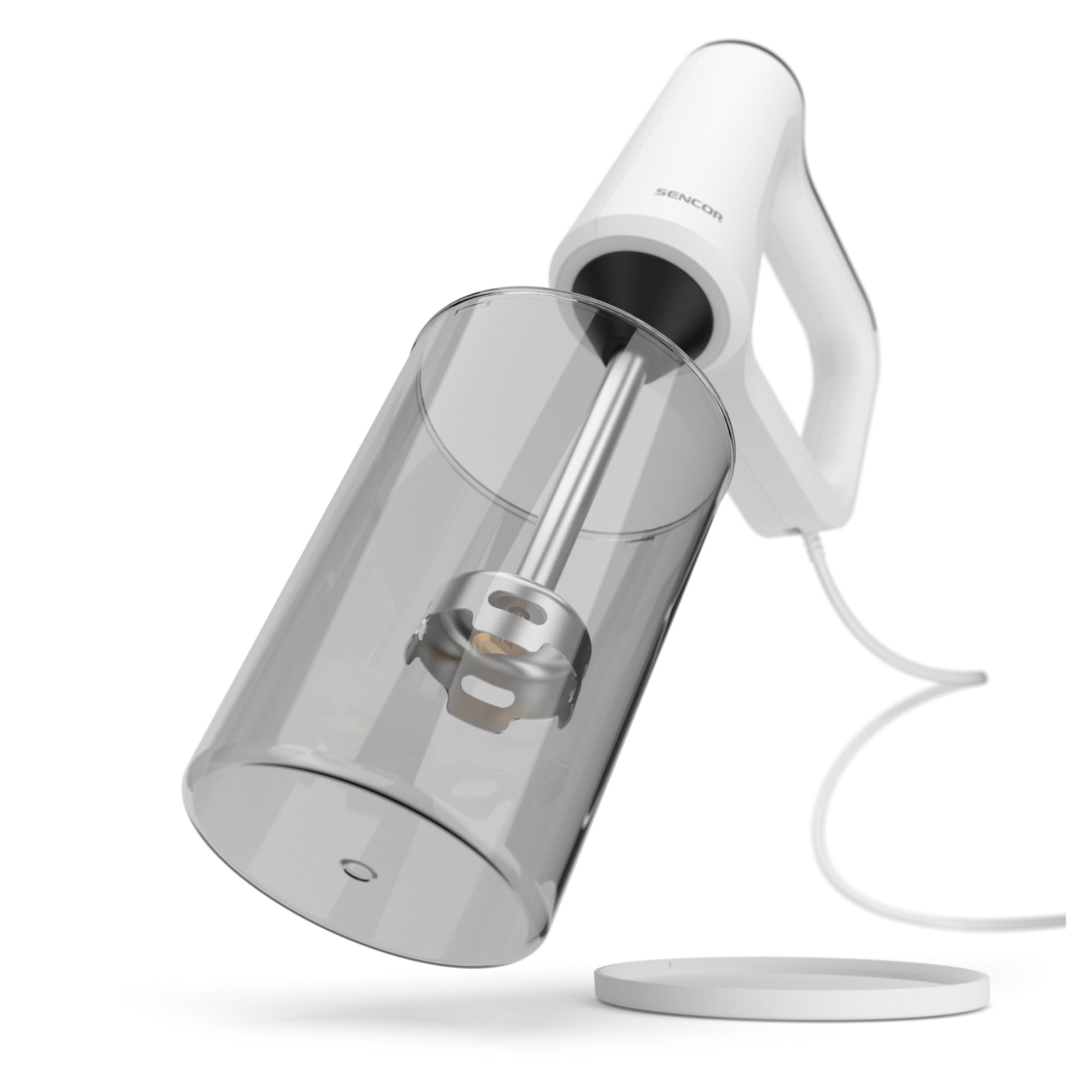 - Tyčový mixér s nádobou 1,5 l, vekom a dvoma čepeľami s titánovým povrchom