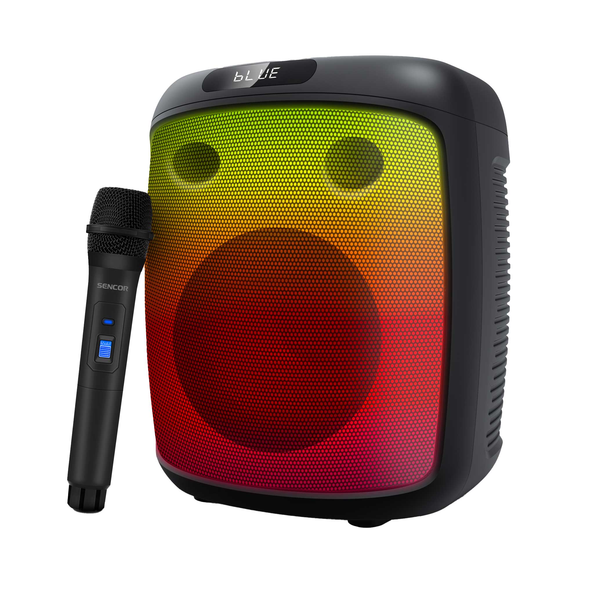 - Predný LED farebný panel s efektmi