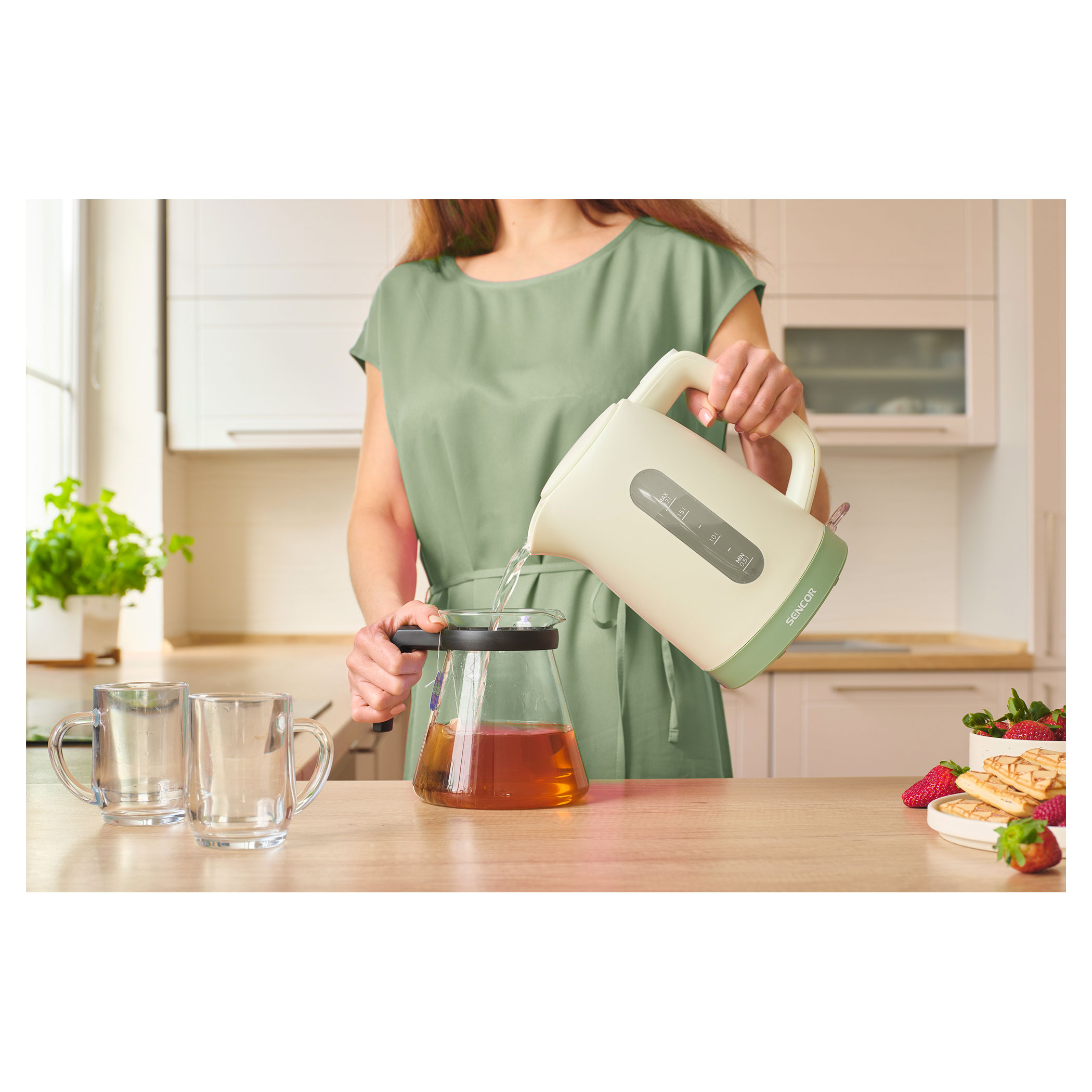 Táto 1,7 l kanvica kombinuje vysoký výkon s užívateľsky prívetivými funkciami, ako je priehľadný ukazovateľ hladiny vody, automatické otváranie veka a vyberateľný umývateľný filter pre vždy čistú vodu. Vďaka vykurovacej základni z nehrdzavejúcej ocele so skrytou vykurovacou špirálou zabezpečuje rýchle a rovnomerné varenie. Bezpečnosť zaisťuje ochrana proti prehriatiu a voľnobehu, automatické vypnutie a plastová konštrukcia bez obsahu BPA. Vďaka ďalším praktickým funkciám, ako je 360° konektor STRIX, kontrolka prevádzky a úložný priestor na kábel v spodnej časti, je táto 2 200 W kanvica spoľahlivým pomocníkom do každej kuchyne.