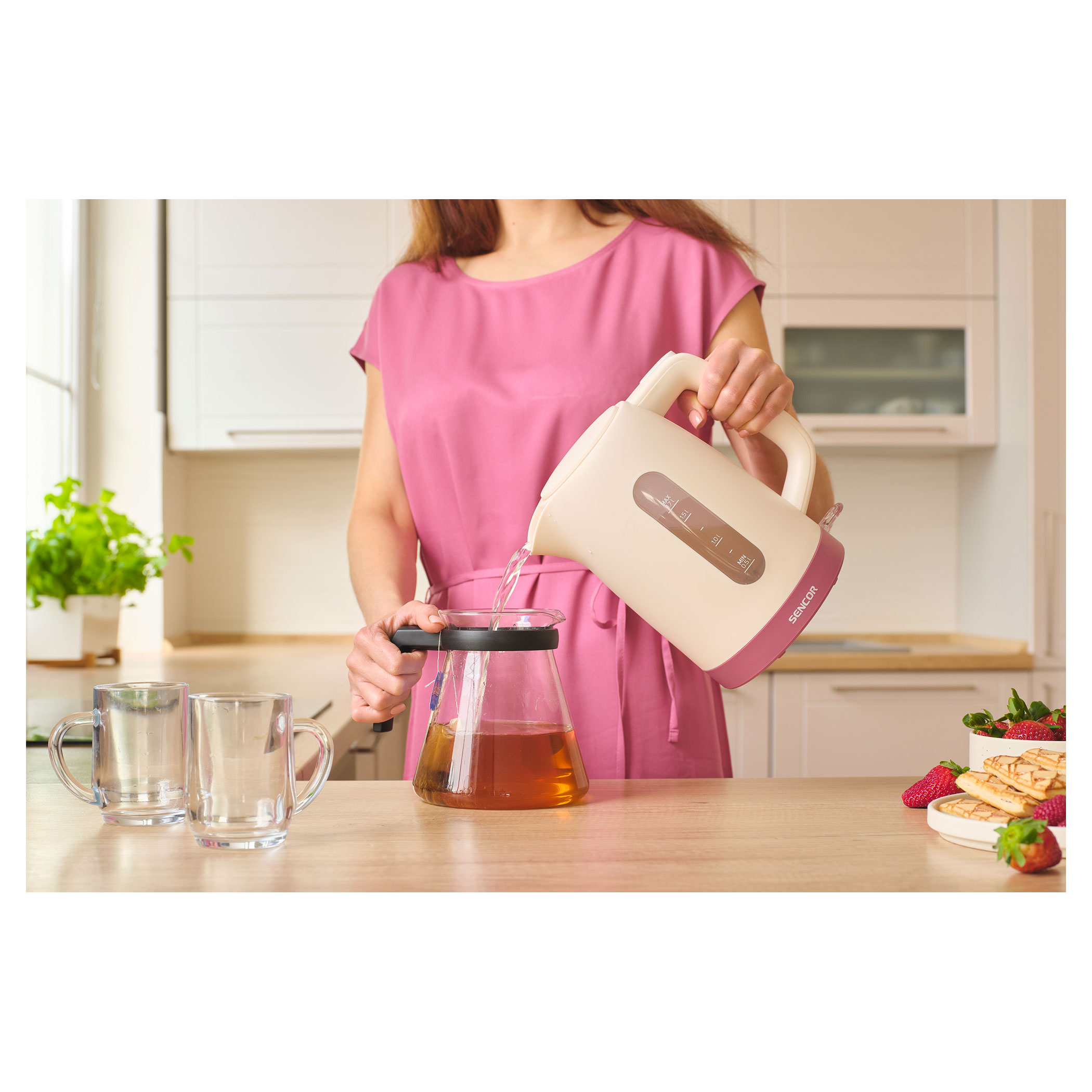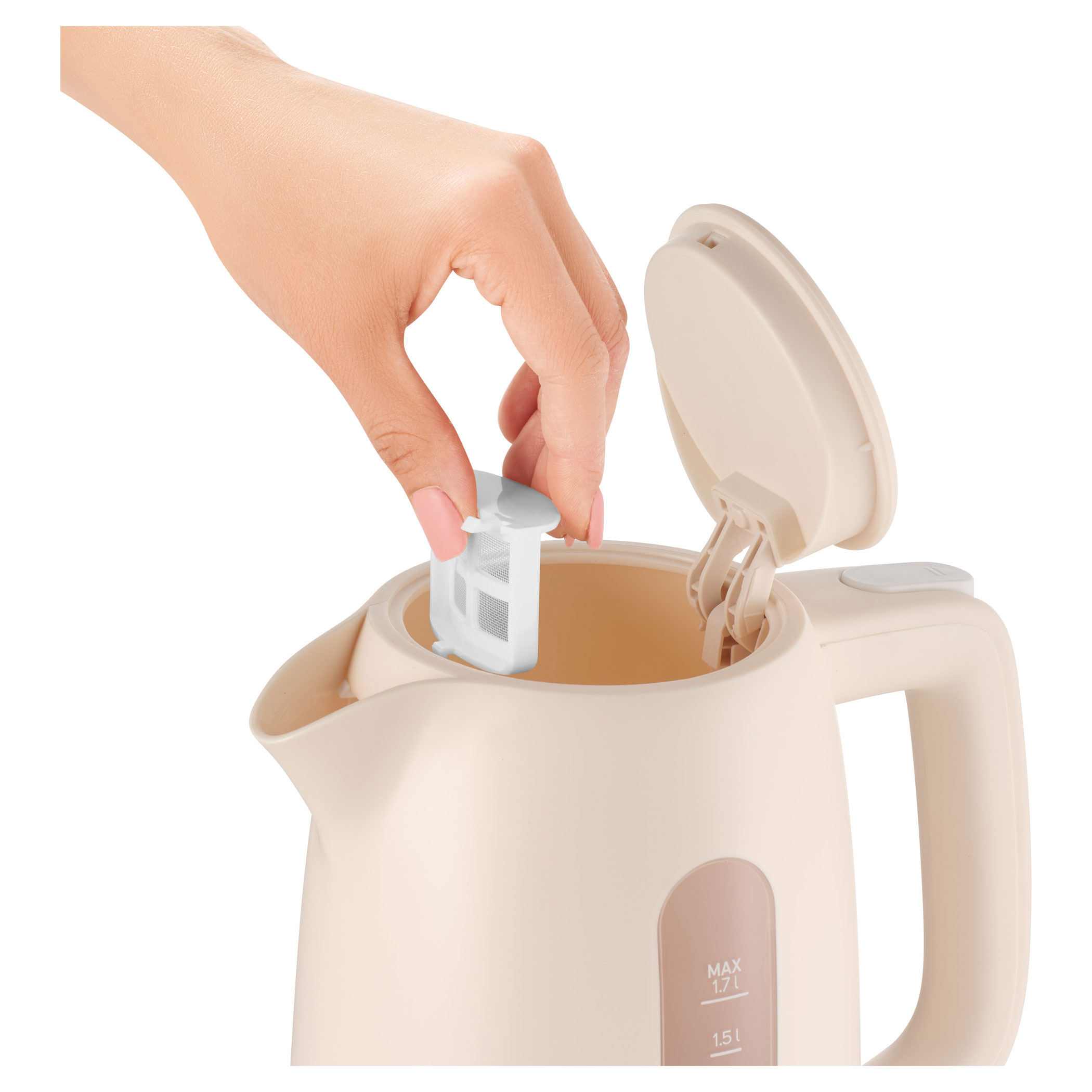 Táto 1,7 l kanvica kombinuje vysoký výkon s užívateľsky prívetivými funkciami, ako je priehľadný ukazovateľ hladiny vody, automatické otváranie veka a vyberateľný umývateľný filter pre vždy čistú vodu. Vďaka vykurovacej základni z nehrdzavejúcej ocele so skrytou vykurovacou špirálou zabezpečuje rýchle a rovnomerné varenie. Bezpečnosť zaisťuje ochrana proti prehriatiu a voľnobehu, automatické vypnutie a plastová konštrukcia bez obsahu BPA. Vďaka ďalším praktickým funkciám, ako je 360° konektor STRIX, kontrolka prevádzky a úložný priestor na kábel v spodnej časti, je táto 2 200 W kanvica spoľahlivým pomocníkom do každej kuchyne.