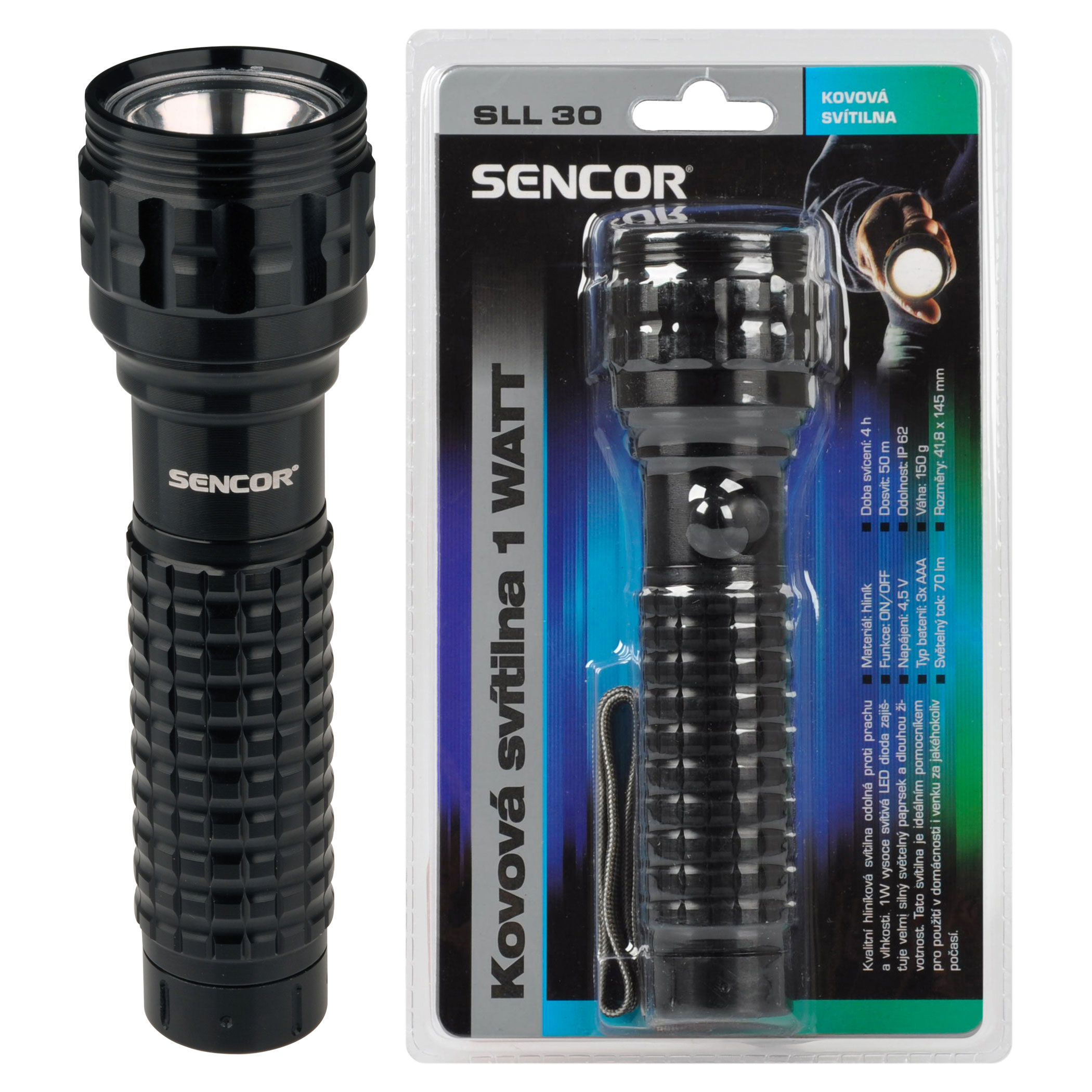 1 watová vysoko svietivá LED dióda zaisťuje veľmi silný svetelný lúč a dlhú životnosť