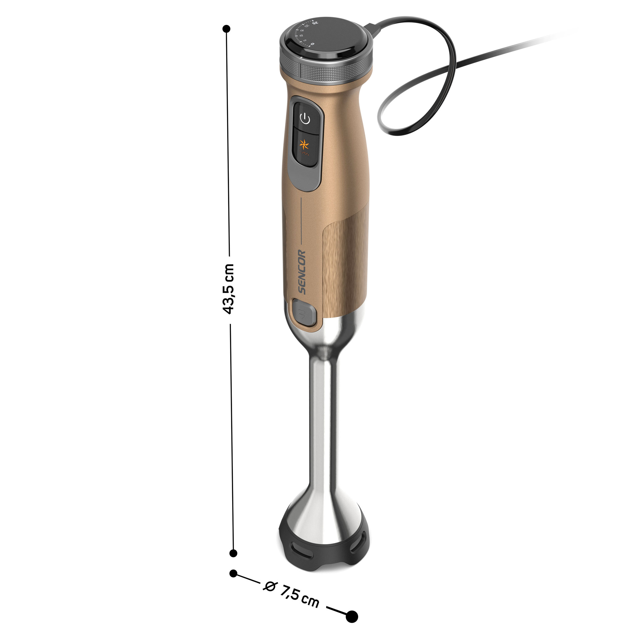 • Rozmery tyčového mixéra (š × h × v): 7,5 × 7,5 × 43,5 cm