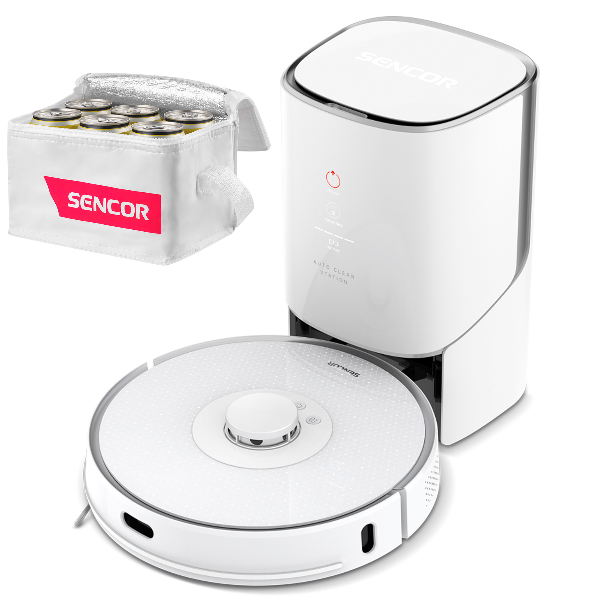Robotický vysávač Sencor SRV 9385WH má k dispozícii špeciálnu nádobu na prach a nečistoty, ktorá je súčasťou nabíjacej stanice. Vo chvíli, keď vysávač dokončí prácu, obsah jeho vnútornej nádrže sa presaje do vrecka na prach, ktorý je umiestnený vo vnútri stanice. Vrecko na prach raz za čas vynesiete, podobne ako pri bežnom vysávači. Robotický vysávač je vďaka tomu ešte samostatnejší vo svojej upratovacej činnosti. Vo vybavení stanice nechýba indikátor naplnenia vrecka.